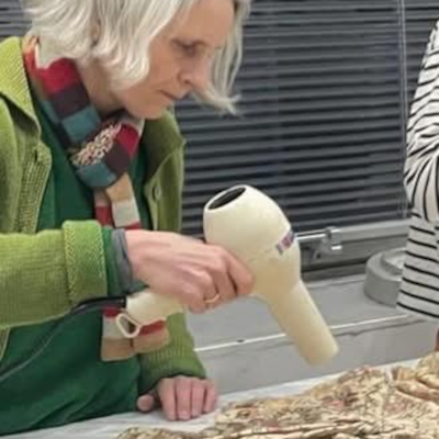 After many years as a museum based conservator, Zenzie left the V&A in 2003 to establish her freelance business from a spare room at home in Brighton. As the business grew she moved to larger premises in central Brighton, allowing the studio to employ more staff and attract further clients. At the end of 2025, after 23 years at New England House, Zenzie Tinker Conservation relocated again, for what we hope will be the final time, to a private creative studio in the Hanover area of Brighton. Over the years since establishing Zenzie Tinker Conservation, our expertise and facilities have grown and we have developed into one of the largest privately run textile conservation studios in the UK offering a wide range of conservation and display services.