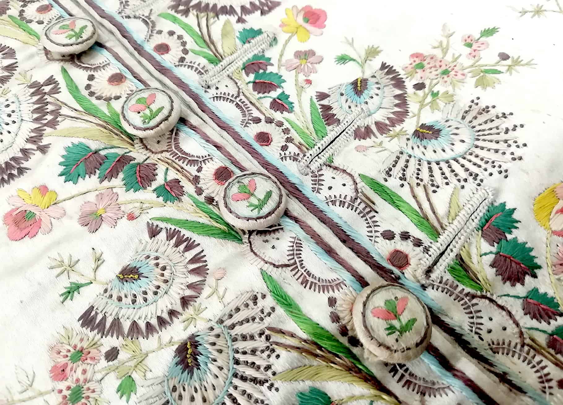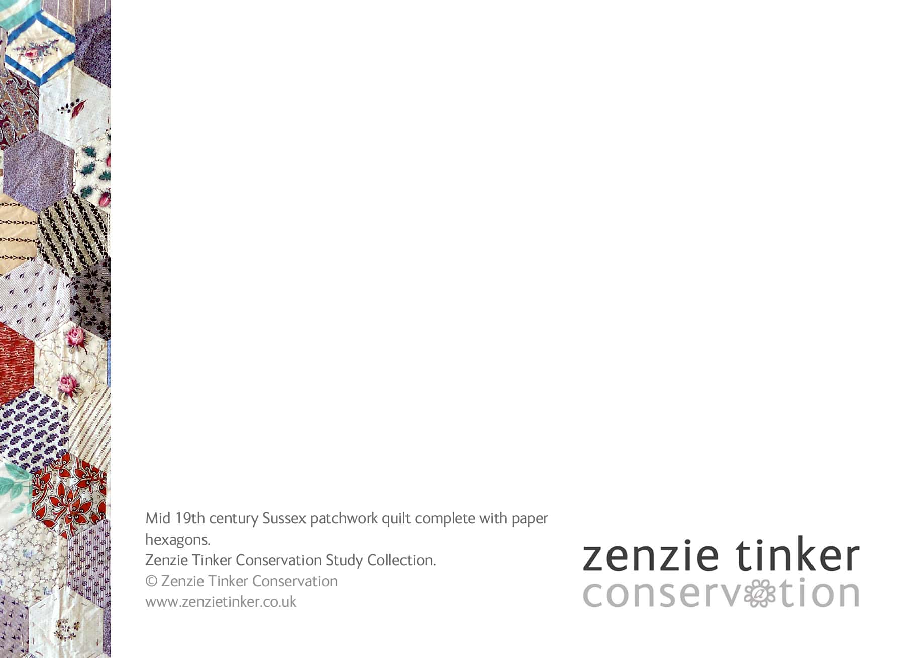 ‘Conservation in Action’ focuses on close-ups of the ZTC team at work, ‘Brighton patchwork quilt’ highlights details of the front and back of a piece from our own study collection, and ‘Floral Details’ showcases some of the beautiful flowers we encounter over a range of objects. Select a category from the dropdown menu to see thumbnails of each postcard.